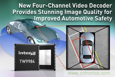 【導讀】近日,Intersil公司宣布,推出用于汽車環(huán)景泊車輔助應用的新型四通道模擬視頻解碼器TW9984,該解碼器內置有模擬視頻編碼器,可幫助提高駕駛員以及行人的安全性。