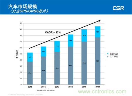 汽車市場規(guī)模(分立GPS/GNSS芯片)