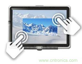 觸摸屏的功能發(fā)展由簡及繁,最初的產(chǎn)品只支持最簡單的操[LU4]控,就是一個手指觸摸屏幕上的一點來實現(xiàn)操控。比如我們每天在附件超市的POS終端機,或者在機場的check-in終端上進行的操作。以前,我們只能通過屏幕周邊的機械按鈕進行操控,單點觸摸屏在此基礎(chǔ)上實現(xiàn)了用戶界面方面的一大進步。當然,機械和新型電容式觸摸感應按鈕在我們的家庭、辦公室及其他地方無所不在:手機、固定電話、遙控器、電視、電腦及其各種外設(shè)、游戲機、電冰箱、微波爐、烤箱,以及無線電和空調(diào)等車內(nèi)電子控制設(shè)備等等?,F(xiàn)在,如下列圖1所示的單點觸摸屏在顯示屏上直接集成了用戶控制界面,因此再也不需要傳統(tǒng)的機械按鈕了。