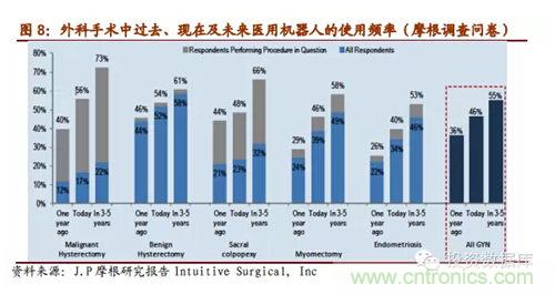 雖然當(dāng)前醫(yī)用機器人普及率還很低,并且安裝的大部分是發(fā)達國家,但摩根的近期的一個調(diào)查研究中問及外科醫(yī)生們未來他們會在自己在手術(shù)中多高頻率的使用醫(yī)用機器人,數(shù)據(jù)表明美國的外科醫(yī)生們認為未來3-5年里醫(yī)用機器人在手術(shù)中的使用率會迅速上升到一個比較高的層次,約占50%,醫(yī)用機器人市場潛力巨大。IFR預(yù)測在未來的4年里,醫(yī)療機器會以每年19%的速度增長,2016年全球市場規(guī)模估計會增長到119億美元。