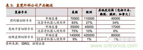 目前,直覺外科公司在復(fù)雜的外科手術(shù)中機器人應(yīng)用技術(shù)嫻熟,美國的達芬奇機器人滲透率和使用率相對于其他地區(qū)和國家明顯更高,隨著更多國家對醫(yī)療機器的需求提高和直覺外科公司在國際市場的營銷推進,達芬奇機器人的市場潛力巨大。