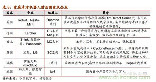 根據(jù)中國品牌網(wǎng)統(tǒng)計公布的2013年十大掃地機器人品牌排行榜,我國國產(chǎn)掃地機器人有6家上榜。目前為止,我國已經(jīng)有一部分表現(xiàn)優(yōu)良的企業(yè)涉足家用清潔機器人的開發(fā)和生產(chǎn),都和國內(nèi)高校研發(fā)機構(gòu)有所合作,做到研產(chǎn)結(jié)合。當(dāng)前機器人行業(yè)發(fā)展的宏觀前景良好,市場潛力巨大,目前我國會在未來出現(xiàn)一批在細分行業(yè)技術(shù)領(lǐng)先表現(xiàn)良好的潛力企業(yè)。