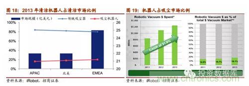 智能吸塵機器人是一個巨大的市場,隨著經(jīng)濟水平和技術(shù)的提高,掃地機器人將會替代更多的傳統(tǒng)型掃地設(shè)備,2013年數(shù)據(jù)統(tǒng)計,在家庭掃地市場上,北美市場為22億美元,機器人占18%;歐洲、中東及非洲地區(qū)(EMEA)市場達25億美元,機器人占20%;環(huán)太平洋與日本(APAC)市場為22億美元,其中機器人占16%。