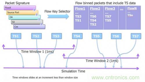 硬件仿真的標(biāo)志之一是,它能對大型復(fù)雜系統(tǒng)進行復(fù)雜性能分析。某些情況下,可能需要數(shù)百萬個數(shù)據(jù)包才能切中當(dāng)前設(shè)計中穩(wěn)態(tài)分析的要點。以測量百萬兆以太網(wǎng)交換機的流量比特率為例??梢圆捎锰摂M以太網(wǎng)簽名生成和數(shù)據(jù)包時間戳 (TS) 來計算這些測量。