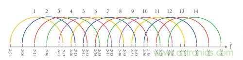 Wi-Fi在802.11b/g的標準的工作頻段為2.4GHz(2.4GHz-2.4888GHz),劃分為14個信道,每個信道帶寬為22MHz,Wi-Fi頻譜列表如下所示: