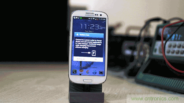 盒子里。緩沖電池的作用是先儲存接收到的電能,然后再給手機(jī)充電。據(jù) Ars Technica 描述,在發(fā)射器打開 20 秒后,緩沖電池就開始工作了,也就是說,手機(jī)座上的三星手機(jī)開始顯示充電。