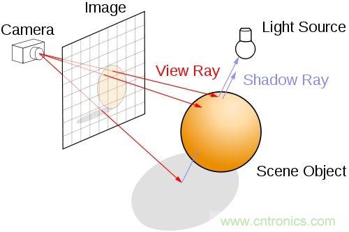 反向追蹤算法正好相反,它是從觀察者的角度出發(fā),只追蹤那些觀察者所能看見的表面投射光。就目前而言,所有3D制作軟件的光線追蹤算法都是采用反向追蹤法,原因是這種算法能夠最大程度地節(jié)省計(jì)算機(jī)的系統(tǒng)資源,而且不會(huì)導(dǎo)致渲染質(zhì)量的下降。