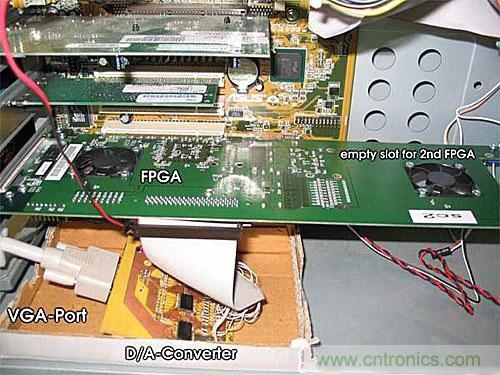 SaarCOR在SIGGRAPH 2005展示的RPU原型機(jī)用FPGA來構(gòu)建,頻率運(yùn)行在66MHz,內(nèi)存帶寬也只有350MB/s,但是得益于特別設(shè)計(jì)的專用架構(gòu),其性能可以跟P4 2.6G的CPU跑OpenRT軟件光線追蹤的性能相媲美。