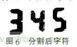 得到字符在圖像中的位置后,即可將字符從圖像中分割出來。由于實(shí)際分割過程中每個(gè)字符大小不一致,如圖6所示,所以對分割字符進(jìn)行歸一化處理,使不同字符的大小統(tǒng)一為固定大小,便于后續(xù)字符分割。首先將圖6中字符周圍的空白位置切除,然后采用三次樣條插值的方法,對源圖像附近的4×4個(gè)鄰近像素進(jìn)行三次樣條擬合,最后將目標(biāo)像素對應(yīng)的三次樣條值作為目標(biāo)圖像對應(yīng)像素點(diǎn)的值。將字符歸一化以后,所得各個(gè)字符如下圖7所示。