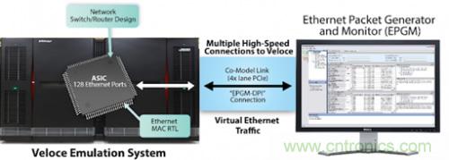 Veloce VirtuaLAB 可通過(guò)將大多數(shù)的測(cè)試環(huán)境轉(zhuǎn)移到軟件中來(lái)克服硬件環(huán)境的障礙,并在可運(yùn)行多達(dá)20億門設(shè)計(jì)的可擴(kuò)展 Veloce 平臺(tái)上運(yùn)行。另外,VirtuaLAB 協(xié)議解決方案還可滿足網(wǎng)絡(luò)交換機(jī)或路由器公司在驗(yàn)證其芯片時(shí)的關(guān)鍵目標(biāo):數(shù)據(jù)包延遲、帶寬、數(shù)據(jù)包丟失、亂序序列以及流量分析。