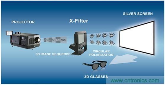 偏光式3D的基本原理其實(shí)與紅藍(lán)3D差不多,只不過(guò)在技術(shù)上相對(duì)成熟,采用兩個(gè)不同偏振方向的偏振片作為眼鏡,這樣垂直偏振的左眼將接受不到水平偏振的光,同樣水平偏振的右眼也接受不到垂直偏振的光。這樣我們?cè)谕渡鋱D像的時(shí)候只需要將不同角度的圖像信息以不同偏振態(tài)的光發(fā)射出來(lái),我們的兩個(gè)眼睛就會(huì)分別看到不同角度的信息,形成立體視覺(jué)。
