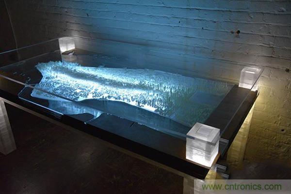 【導讀】在紐約長大的藝術家Troy Huang使用3D打印和激光切割技術制作了一張讓人驚艷的桌子,這張桌子上布滿了曼哈頓的每一棟建筑模型。這就是曼哈頓城區(qū)的微縮模型,盡管是微縮的,但是其中的每棟建筑、每條街道都清清楚楚,十分精細,再用LED燈點亮,一座燦爛輝煌的世界之都呈現(xiàn)在我們眼前。