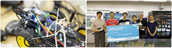 大賽的另一個(gè)關(guān)注點(diǎn)來(lái)自一支名叫“老少爺們兒”的參賽隊(duì)伍,之所以叫這個(gè)名字是因?yàn)樵撽?duì)除了有年紀(jì)較大的中年人,還有本次大賽年紀(jì)最小的選手。這只隊(duì)伍的參賽項(xiàng)目是“神經(jīng)元探索車”,他們采用Genuino 101(神經(jīng)元)模塊,通過(guò)Wi-Fi來(lái)控制帶視屏和抓手的小車,實(shí)現(xiàn)遠(yuǎn)程取物排障。小選手現(xiàn)場(chǎng)非常積極、投入,與年齡比自己大很多的隊(duì)友團(tuán)結(jié)協(xié)作,親自動(dòng)手制作,最終,他們獲得西門子創(chuàng)客大賽入場(chǎng)券。