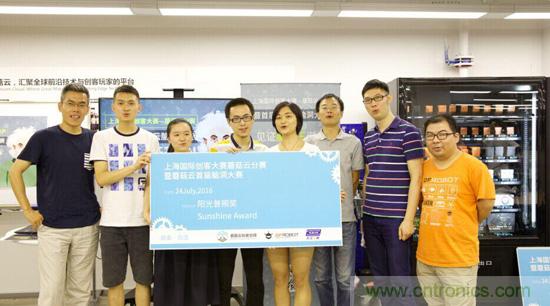 云漢芯城社區(qū)運(yùn)營(yíng)總監(jiān)顧天任(右二)為參賽隊(duì)伍頒發(fā)陽(yáng)光普照獎(jiǎng)