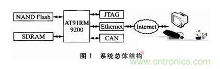 支持遠(yuǎn)程自動更新的嵌入式Linux系統(tǒng)機構(gòu),它可以分為嵌入式終端和遠(yuǎn)程管理系統(tǒng)兩部分。系統(tǒng)的總體結(jié)構(gòu)如圖1所示,嵌入式終端采用基于ARM9架構(gòu)的AT91RM9200微處理器,采用擴展的32MB SDRAM,由2片16位數(shù)據(jù)寬度的SDRAM芯片HY57V281620并連而成,采用64MB NANDFla sh存儲芯片K9F1208,運行嵌入式Linux系統(tǒng)。遠(yuǎn)程管理系統(tǒng)選用PC機。嵌入式終端通過以太網(wǎng)連接到遠(yuǎn)程管理系統(tǒng),管理人員可以通過telne t即可對各個嵌入式終端進(jìn)行監(jiān)控、管理和遠(yuǎn)程更新。