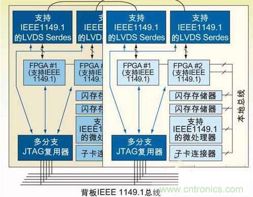 當(dāng)能夠?qū)σ粋€(gè)背板上的多板卡系統(tǒng)級(jí)使用到JTAG的特性時(shí),就實(shí)現(xiàn)了下一代JTAG接入。在這種環(huán)境下,仍然能夠單獨(dú)實(shí)現(xiàn)單板卡級(jí)JTAG功能,而且 還可以利用到板卡間的功能。這一代JTAG應(yīng)用不 但促進(jìn)了單板卡上不同規(guī)則的設(shè)計(jì)團(tuán)隊(duì)相互合作,也促進(jìn)了整個(gè)系統(tǒng)下不同板卡設(shè)計(jì)團(tuán)隊(duì)之間的合作。如果在上一代JTAG應(yīng)用中采用了一個(gè)JTAG多路器,那 么這個(gè)多路器支持多支路(mulTI-drop)接入。采用一種尋址方案,可以將串行JTAG總線用于多支路配置,提供對(duì)多板卡的支持。而一旦JTAG能 夠接入一塊背板上的多個(gè)板卡,就能實(shí)現(xiàn)系統(tǒng)級(jí)的配置或編程(例如,JTAG可以并行接入多塊板卡)。