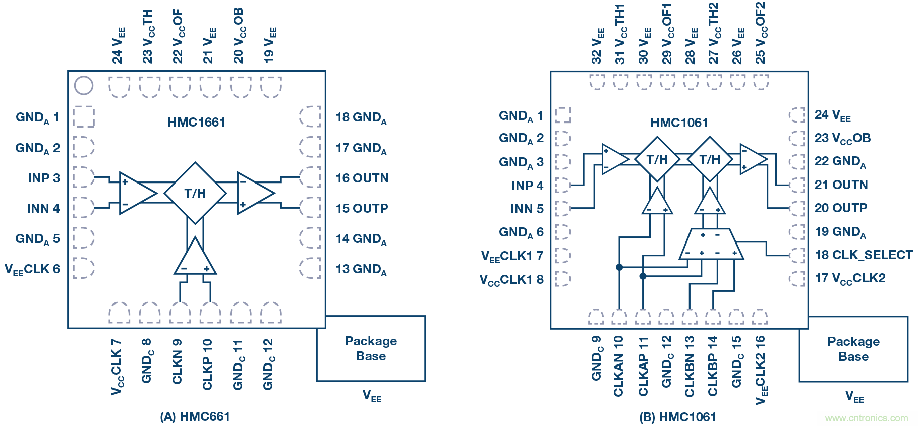ADI的THA系列產(chǎn)品可以在18 GHz帶寬范圍內(nèi)提供精密信號(hào)采樣,在DC至超過10 GHz的輸入頻率范圍內(nèi)具有9到10位線性度、1.05 mV噪聲和< 70 fs的隨機(jī)孔徑抖動(dòng)性能。該器件可以4 GSPS工作,動(dòng)態(tài)范圍損失極小,具體型號(hào)包括HMC661 和 HMC1061。這些跟蹤保持 放大器可用于擴(kuò)展高速模數(shù)轉(zhuǎn)換和信號(hào)采集系統(tǒng)的帶寬和/或高頻線性度。