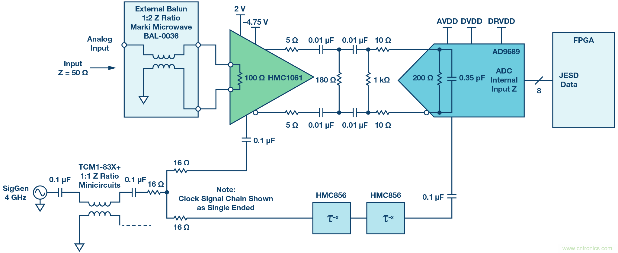 圖5. THA和ADC前端網(wǎng)絡(luò)及信號(hào)鏈。
