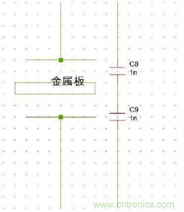這樣初級(jí)的噪聲就可以從金屬板旁路到地。