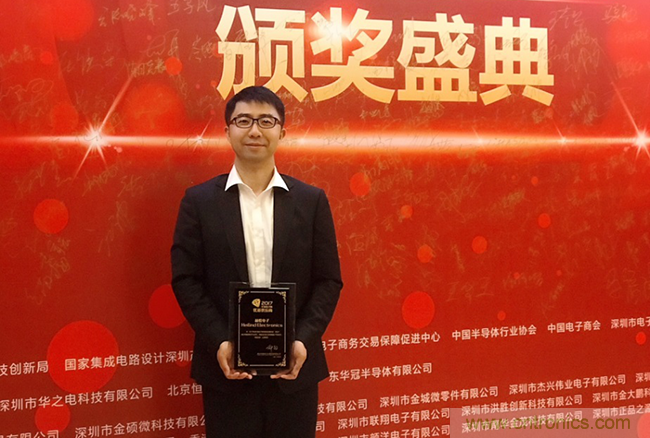 圖1:赫聯(lián)電子亞太區(qū)分公司經(jīng)理Collins Yang代表赫聯(lián)電子領獎