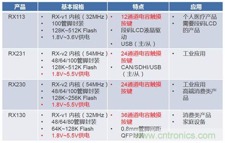 瑞薩電子提供4個(gè)產(chǎn)品系列,來適用于不同的應(yīng)場(chǎng)合,分別為RX113、RX130、RX230、RX231。