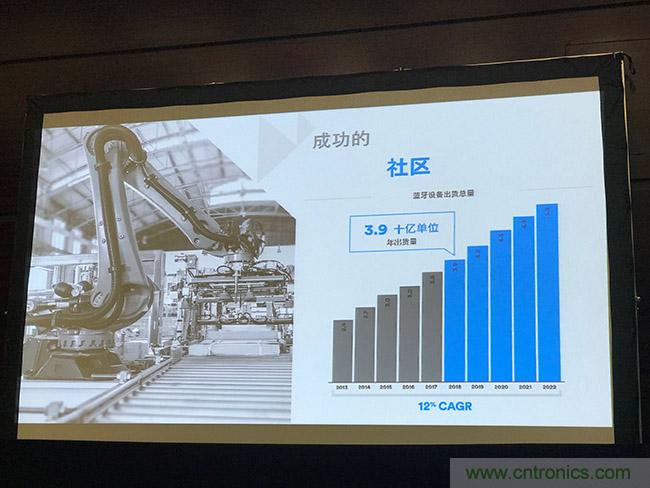 藍(lán)牙技術(shù)聯(lián)盟(Bluetooth SIG)目前已經(jīng)擁有34000會(huì)員,其中6000家中國(guó)會(huì)員企業(yè),SIG總監(jiān)Chuck Sabin回顧了藍(lán)牙20年來(lái)的發(fā)展歷程和取得的成績(jī),以及藍(lán)牙市場(chǎng)的發(fā)展趨勢(shì)特別是新興市場(chǎng)的發(fā)展前景。智能樓宇,智能家居,智慧城市和汽車(chē)是熱門(mén)應(yīng)用領(lǐng)域,Sabin指出。
