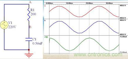 電容器實(shí)際上起到一個(gè)限制電流和動(dòng)態(tài)分配電容器和負(fù)載兩端電壓的角色。