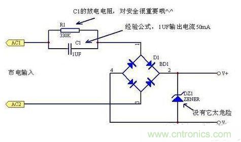 【導(dǎo)讀】將交流市電轉(zhuǎn)換為低壓直流的常規(guī)方法是采用變壓器降壓后再整流濾波,當(dāng)受體積和成本等因素的限制時,最簡單實用的方法就是采用電容降壓式電源.