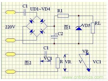 電容降壓式電源是一種非隔離電源,在應(yīng)用上要特別注意隔離,防止觸電。