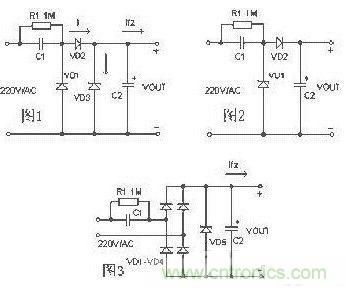 回路,D3 是穩(wěn)壓二極管R1 為關(guān)斷電源后C1 的電荷泄放電阻。在實際應(yīng)用時常常采用的是圖-2的所示的電路。當(dāng)需要向負(fù)載提供較大的電流時,可采用圖-3 所示的橋式整流電路。整流后未經(jīng)穩(wěn)壓的直流電壓一般會高于30 伏,并且會隨負(fù)載電流的變化發(fā)生很大的波動,這是因為此類電源內(nèi)阻很大的緣故所致,故不適合大電流供電的應(yīng)用場合。