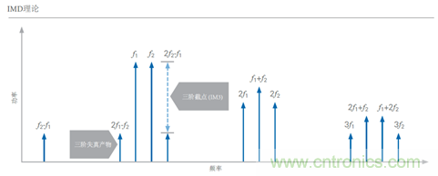 為了理解IMD,我們需要回顧一下非線性系統(tǒng)的多音信號理論。雖然單音激勵信號會在該信號頻率的每個倍數處產生諧波行為,但是多音信號產生的非線性產物需要在更寬的頻率范圍才會出現。