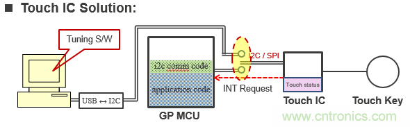 圖1 使用觸控IC和MCU應(yīng)用方案中軟、硬件組成圖