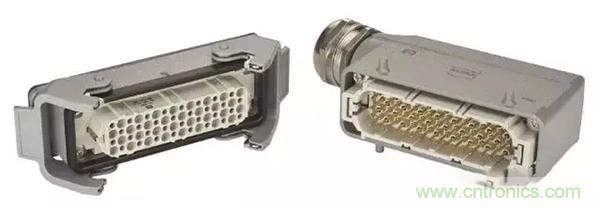 第二個(gè)例子是,Han® 高密度模塊:滿載的情況下,在模塊中有25個(gè)插針,能夠傳輸4A/50V的信號(hào)。其他具有更高的接觸密度的Han®模塊也在開發(fā)之中。