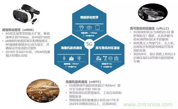 未來5G將應(yīng)用在增強(qiáng)移動(dòng)寬帶(eMBB)、高可靠低時(shí)延通信(uRLLC)、海量機(jī)器類通信(mMTC)三大場(chǎng)景。而這需求的是非常寬的帶寬,非常高傳輸?shù)乃俾剩浅?煽康牡脱訒r(shí)的連接,另外,還需要海量機(jī)器類型連接的網(wǎng)絡(luò)。