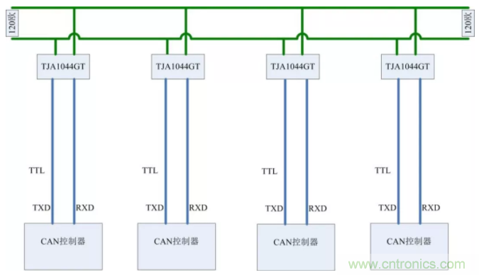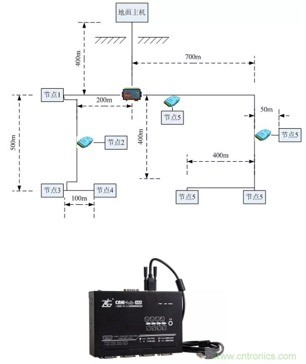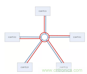 采用CANBridge中繼器,CANHub集線器等組網(wǎng)設(shè)備進行分支。這些設(shè)備每路都具備獨立的CAN控制器,所以可以將每段形成獨立的直線拓撲,方便施工。