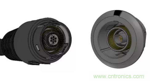 這個標準的高密度(79PIN)連接器有一個外徑為45毫米的金屬外殼、一個螺紋、鎖緊聯(lián)接螺母、一個防水密封圈和1.6mm的爬電/間隙尺寸。它的額定溫度為175℃,循環(huán)使用壽命高。在評估這一標準連接器時,設(shè)計者應(yīng)該考慮這種非被動螺釘聯(lián)軸器是否是適用于特定應(yīng)用的正確的鎖定機構(gòu)。