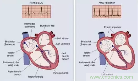 這種心律失常稱之為心房顫動(AFibrilation,AFibrilation,房顫),這是左心房和/或右心房(即心臟兩個上腔)的正常心跳異常。AFib會破壞心房和心室(即心臟的兩個下腔)之間的正常血流,并增加四至五倍中風(fēng)的風(fēng)險,因為它更容易形成血栓。事實上,AFib在血管里由凝塊或脂肪斑塊沉積引起的缺血性中風(fēng)中占的比例達到15-20%。僅在美國,就有270萬和610萬人估計有AFib,預(yù)計這一數(shù)字隨著美國人口老齡化而增加,因為約2%的65歲以下的人和約9%的65歲以上的或更老的人患有AFib。