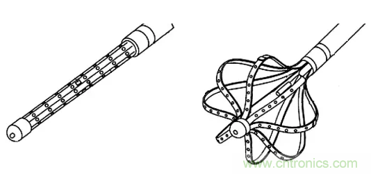 一種電生理學(xué)導(dǎo)管,在心臟中可展開和伸縮,具有64個電極。