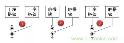 第1種方式干凈搭鐵回路之間的回路并接是允許的;第2種臟搭鐵回路之間的回路并接也是完全可以接受的;對(duì)于第3種臟搭鐵與干凈搭鐵回路并接,通常是可以接受的,但需要得到相關(guān)專(zhuān)業(yè)的評(píng)審?fù)ㄟ^(guò)。