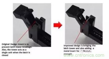 隨著自動(dòng)模塊插入工藝的到來(lái),使用一種穩(wěn)健的DDR5 連接器就變得更加關(guān)鍵。莫仕的 DDR5 插槽在插鎖塔上配有一片金屬,改善了機(jī)械強(qiáng)度。