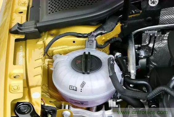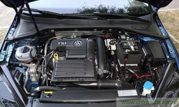 打開(kāi)高爾夫的機(jī)艙蓋,發(fā)現(xiàn)機(jī)艙里面的管路,線束顯得有點(diǎn)零亂。