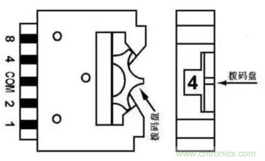 圖4:一位撥碼開(kāi)關(guān)的示意圖