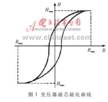 在SPWM全橋逆變器中,由式(1)可知,若輸出變壓器初級電壓正負(fù)半周波對稱,則正負(fù)半周波伏秒積相等,其正反向最大工作磁感應(yīng)強(qiáng)度Bmax也相等,鐵芯磁工作點(diǎn)沿著磁滯回線以中心對稱地往復(fù)運(yùn)動。由圖1所示的變壓器磁芯磁化曲線可見,此時(shí)沒有偏磁存在。反之,若輸出變壓器初級電壓正負(fù)半周波不對稱,正負(fù)半周波伏秒積不相等,則正負(fù)半波磁感應(yīng)強(qiáng)度幅值也不同,磁工作區(qū)域?qū)⑵虻谝换虻谌笙蓿葱纬芍绷髌?。從而?dǎo)致變壓器鐵芯飽和,偏磁的持續(xù)積累最終會使鐵芯進(jìn)入深度飽和,磁工作點(diǎn)進(jìn)入非線性區(qū),鐵心相對磁導(dǎo)率?滋r迅速減少。由(2)式可知,勵磁電流I?滋迅速增大,導(dǎo)致變壓器過熱,最終導(dǎo)致器件毀壞。概括地說,逆變橋SPWM波正負(fù)脈沖不對稱是引發(fā)偏磁的根本原因。
