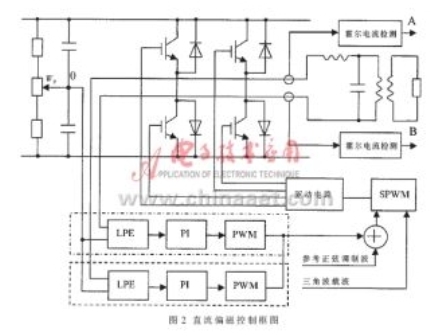 為了防止或減少變壓器中的直流分量,本文以逆變橋各橋臂與中點(diǎn)直流電壓及變壓器原邊的直流電流作為反饋量來抑制直流偏磁。采用這種方法設(shè)計(jì)的電路,經(jīng)在10kHz/15kW的全橋逆變電源中應(yīng)用,證明該電路有效、實(shí)用。