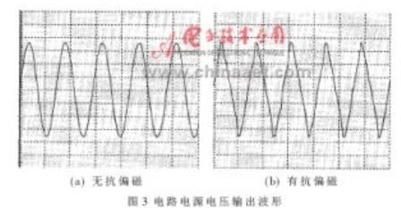 此外,一些資料也提出了一些抗直流偏磁的控制方法,如逐脈沖電流檢測法、電流型PWM控制法、采樣保持法、雙環(huán)控制法等,但它們只適用于DC/AC/DC變換器中的逆變部分,或僅適用于PWM型直流變換器。又如通常采用校正每個開關(guān)周期的脈寬來消除偏磁的方法,它應(yīng)用在PWM變換器中,不存在對輸出波形的影響;但要應(yīng)用在SPWM正弦波逆變器中,由于每個開關(guān)周期的脈寬本來就不一樣,采用此方法會導(dǎo)致嚴(yán)重偏離SPWM模式,產(chǎn)生調(diào)制失真,最終使輸出波形畸變。