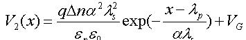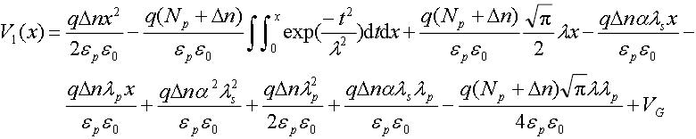 本文采用電子分布曲線擬合近似,設多晶硅/二氧化硅界面處為0=x點,向上為正,峰值處的點的坐標為,分別用以下分布來近似上升和下降階段的載流子分布: