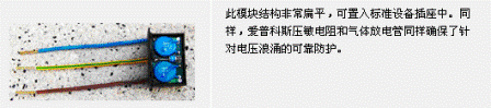 除移動(dòng)模型之外,3Pi–Innovationen.de同樣為固定安裝提供了一個(gè)版本。憑借愛普科斯圓片形壓敏電阻和氣體放電管的緊湊設(shè)計(jì),上述模塊(如圖)的結(jié)構(gòu)極其扁平,可以輕松插入電源輸出端的標(biāo)準(zhǔn)型小尺寸設(shè)備插座中。