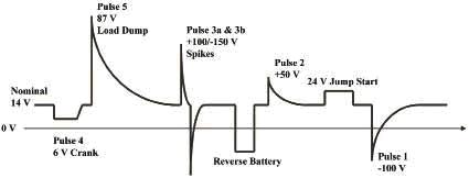 圖1簡要描述了ISO7637-2和汽車電源線上的主要電涌。