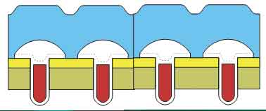 圖4中,每個(gè)MOSFET單元,在相同額定的Vds電壓條件下,導(dǎo)通電阻相同,其具有更高的單元密度,在水平和垂直兩個(gè)方向都盡可能縮小了尺寸。AOS的AON 6702采用DFN的封裝,其Vds為30V,Vgs在10V條件下Rds(on)為1.9mΩ,同時(shí)內(nèi)部集成的具有優(yōu)異特性的肖特基二極管。