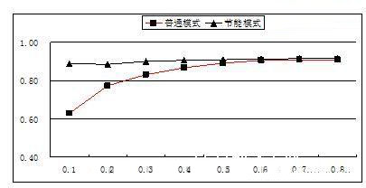 針對電源部分的損耗,戶外電源的工作模式和室內(nèi)電源是一樣的,正常情況下為均流工作模式。市電正常時模塊負載率較低,電源系統(tǒng)大多數(shù)沒有工作在系統(tǒng)最佳效率區(qū)間,因此可以采用電源模塊休眠技術(shù)根據(jù)系統(tǒng)負載狀態(tài),動態(tài)調(diào)整工作模塊數(shù)量,使系統(tǒng)始終工作在最佳效率區(qū)間,從而降低系統(tǒng)的能耗。圖1表示了電源系統(tǒng)在普通工作模式下和節(jié)能模式下的系統(tǒng)典型效率比較。從圖1可看出,采用休眠節(jié)能模式,電源系統(tǒng)的效率在整個負載范圍內(nèi)基本保持不變,有效的降低了電源系統(tǒng)在低負載條件下的能耗。另一方面,對于戶外電源來說,電源系統(tǒng)效率提高會降低設備倉的發(fā)熱量,降低設備倉的溫度。